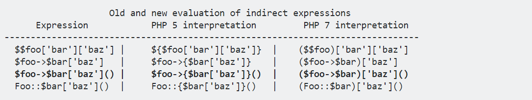 PHP 7将假定您首先要访问一个对象属性,然后要从该属性访问索引,并将其值用作方法名称来调用方法(从左到右的顺序)。