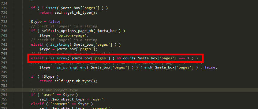 elseif ( is_array( $meta_box['pages'] ) && count( $meta_box['pages'] === 1 ) )