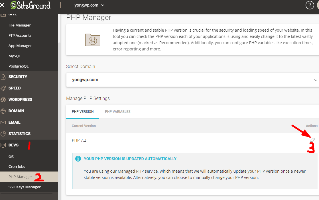 一、Siteground后台将PHP版本设置回之前的版本,如果网站是几年前做的建议直接用方案一