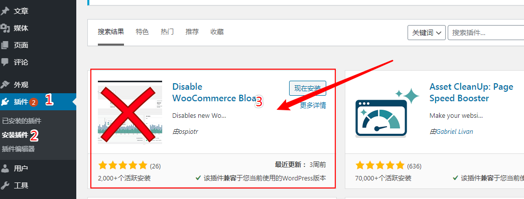 1.:安装Disable WooCommerce Bloat