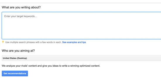 - 输入您的焦点关键字,根据该短语的前10个结果生成内容模板