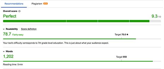 当您实施SEO Writing Assistant工具提供的建议时,您的总体得分也会提高。