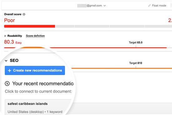 现在您已将插件连接到您的SEMRush帐户,让我们为我们的文章生成SEO建议.