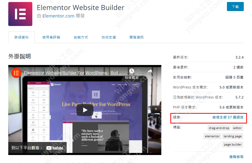下面以Elementor 插件的 繁体中文为例 讲解如何下载插件的语言包,其它的插件 和wp的语言包都是一样的操作