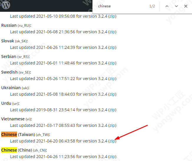 WordPress下载wp及插件的语言包