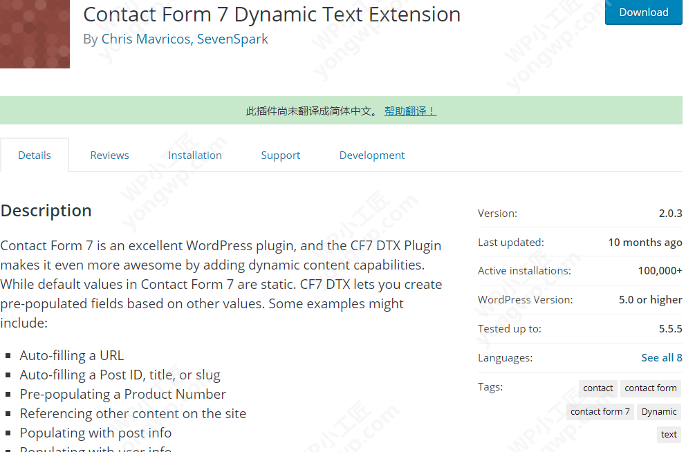 1.安装并启动插件Contact Form 7 Dynamic Text Extension插件