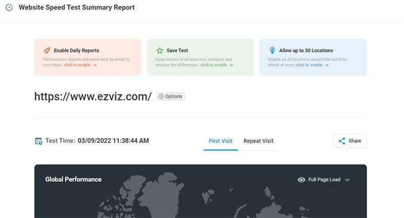 Dotcom网站全球访问测试工具,主要是分析外贸网站在全球各地的速度测试,输入网址后,会出现每个地区节点的载入时间、重复测试后的载入时间、下载页面大小及遭遇到的错误记录,可以查看页面大小、加载时间和下载速度等前端元素,还可以查看HTML、JavaScript和CSS等后端元素,可以对网站针对性优化。