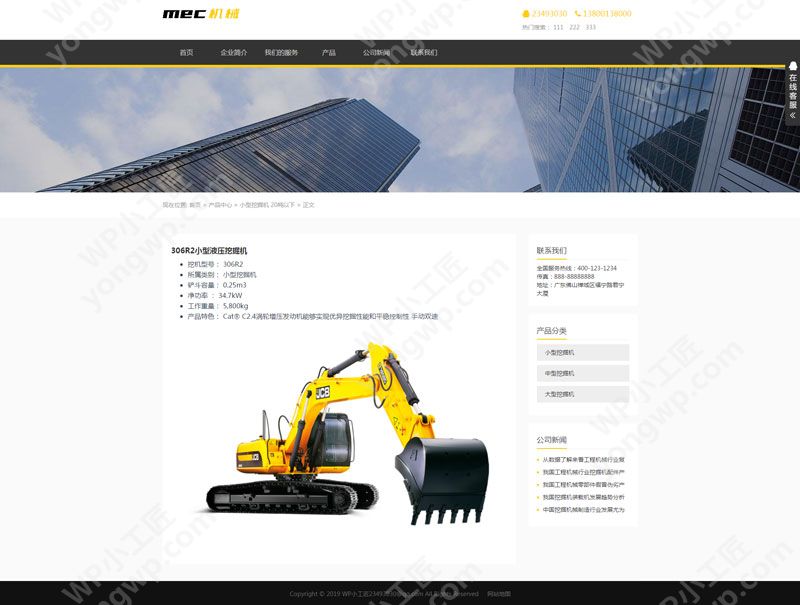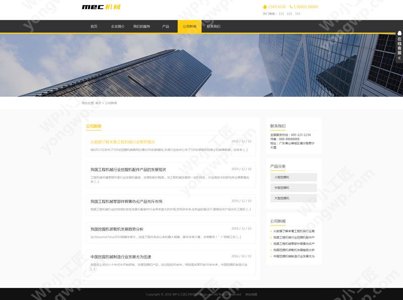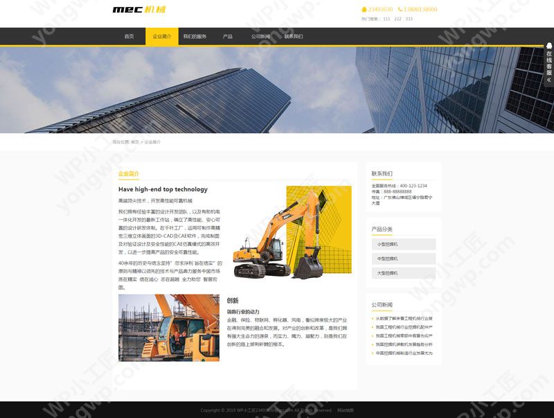 名称:Wordpress黄色自适应机械企业展示主题