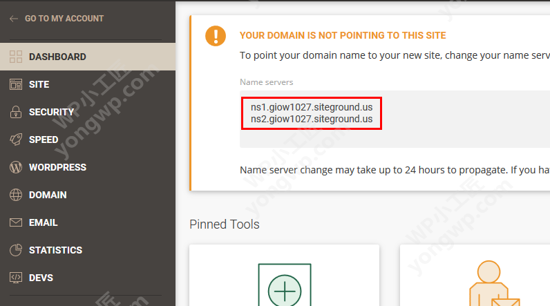 登陆Siteground主机管理界面获取本主机对应的DNS值
