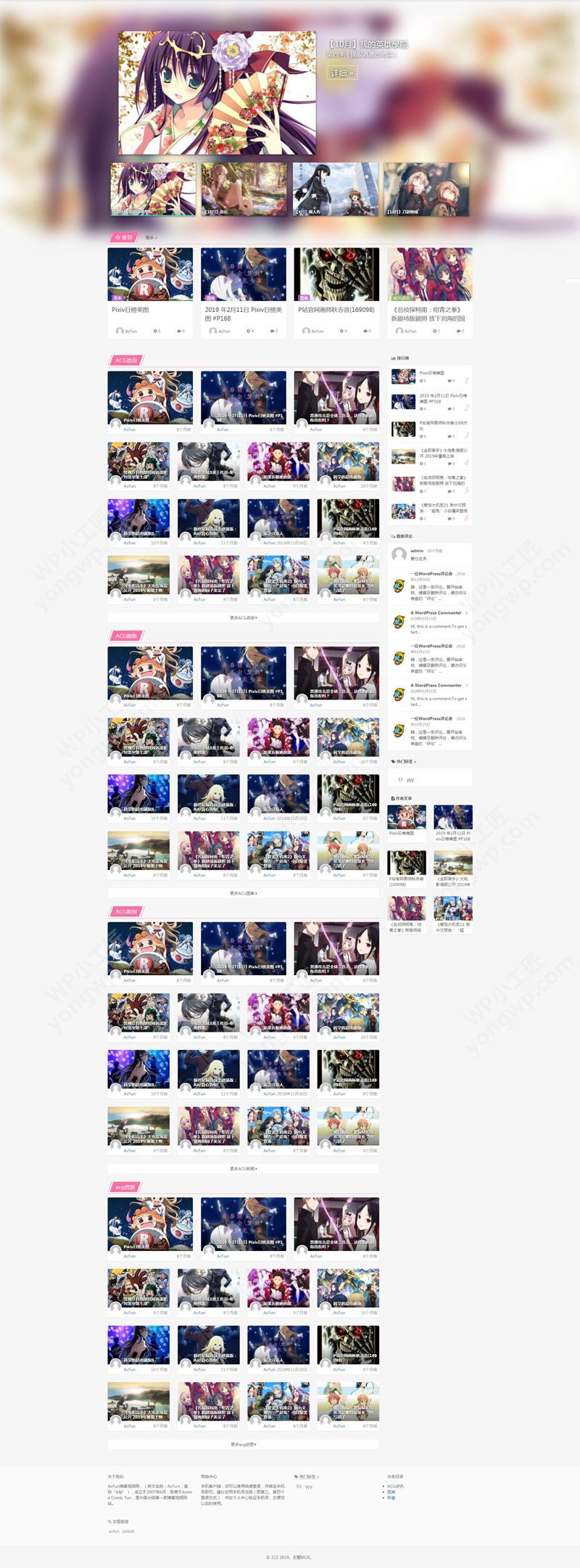 WordPress 粉色二次元动漫风格主题模板源码 哔哩哔哩,ACFun风格-WPDM